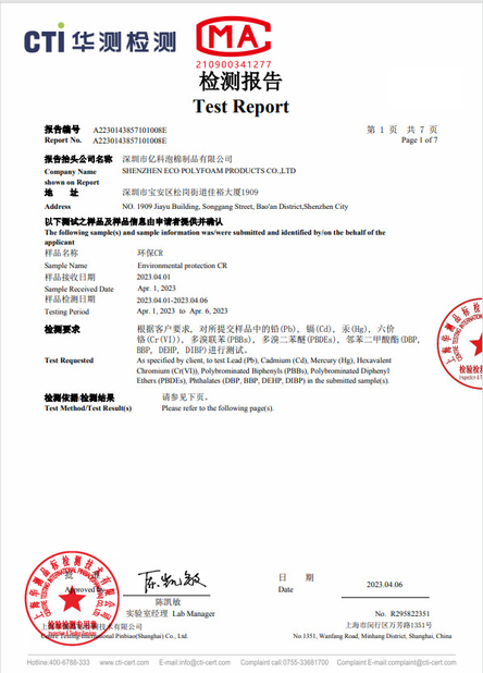 Estándar: CR Rubber Foam RoHSNúmero:Fecha de emisión:Fecha de caducidad: