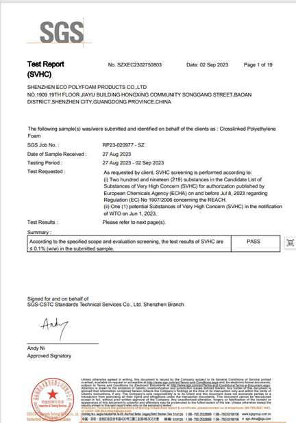 Estándar: PE Foam REACHNúmero:Fecha de emisión:Fecha de caducidad: