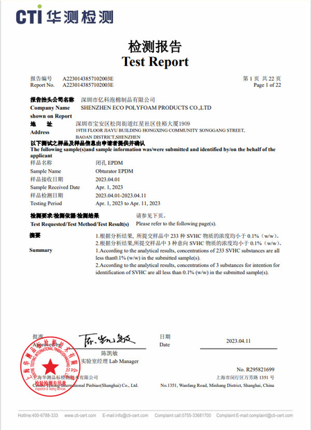 Estándar: EPDM foam REACHNúmero:Fecha de emisión:Fecha de caducidad: